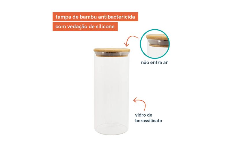 1 unidade do pote de mantimentos de 2000ml com tampa de bambu – oikos