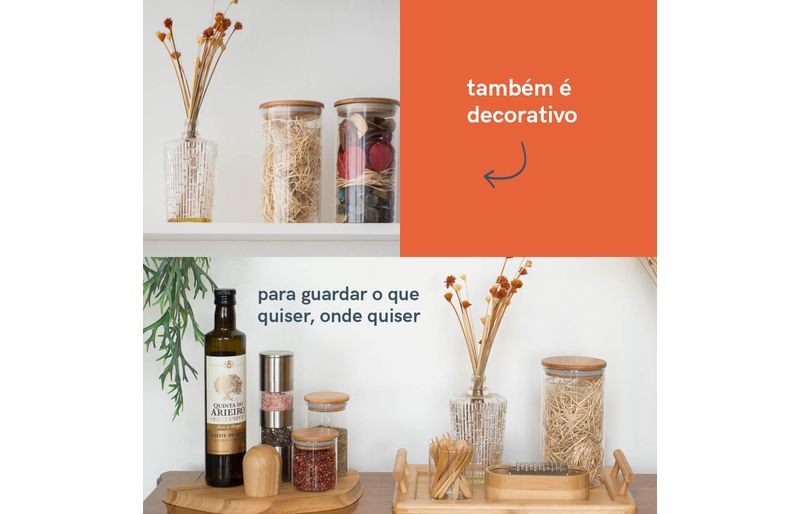 e não é só de comida que vivem esses potes: além de tempero, açúcar e sal, nele cabe purpurina, algodão, moedas, grãos, clipes, grampos, elásticos e outras pequenices que você quiser guardar - isso que é versatilidade.