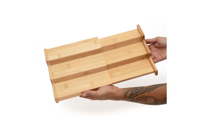 ":: esse é o rack organizador extensível de bambu da oikos.