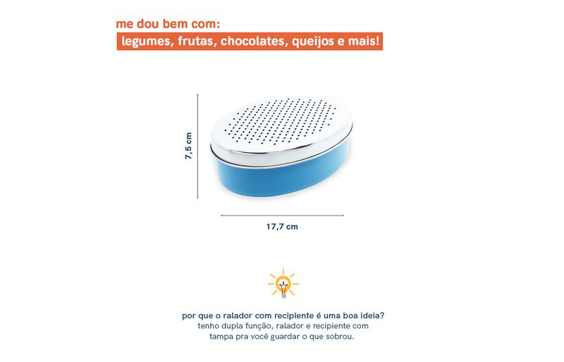 é ideal para quando você acaba ralando de uma vez mais do que você pretende usar! ele já vem com uma tampa para você guardar direto na geladeira tuuudo que sobrar.