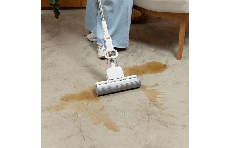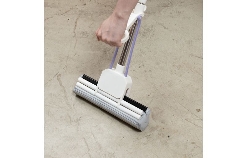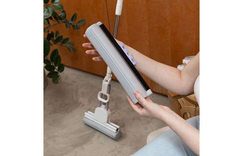 antes de cada uso, é importante deixar a espuma de molho na água por alguns minutos até que ela absorva e amoleça. depois é só usar para esfregar, varrer ou absorver líquidos. para espremer a espuma e remover o excesso de água, basta puxar a alavanca.