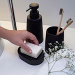 além da peça avulsa, você encontra outros itens dessa família para deixar sua decoração completa: temos o porta objetos, o porta sabonete líquido e escova sanitária com suporte. todos os produtos estão disponíveis na cor preta e verde.