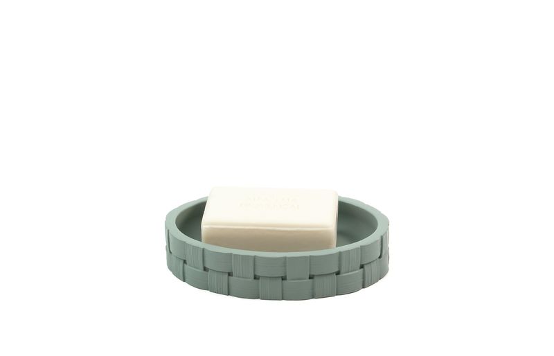 "essa é saboneteira de resina tramado creme da oikos.