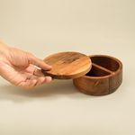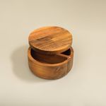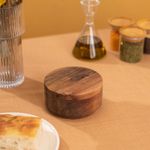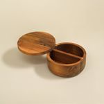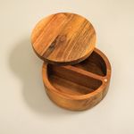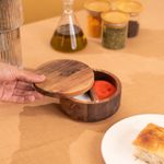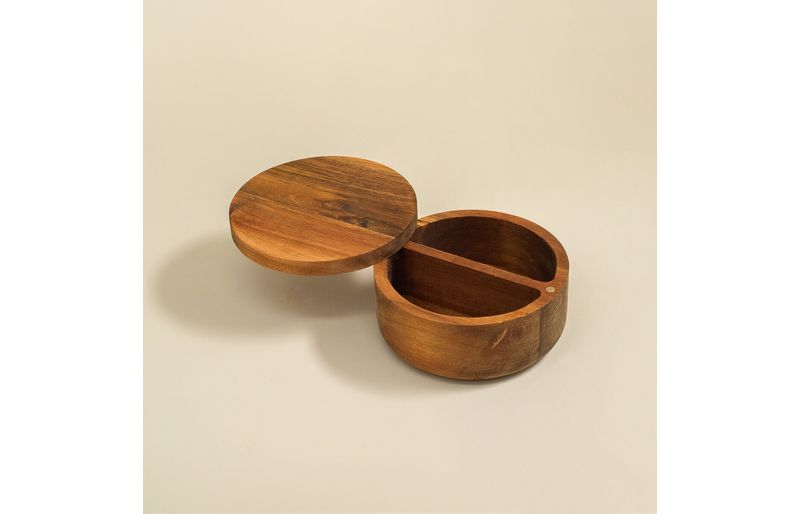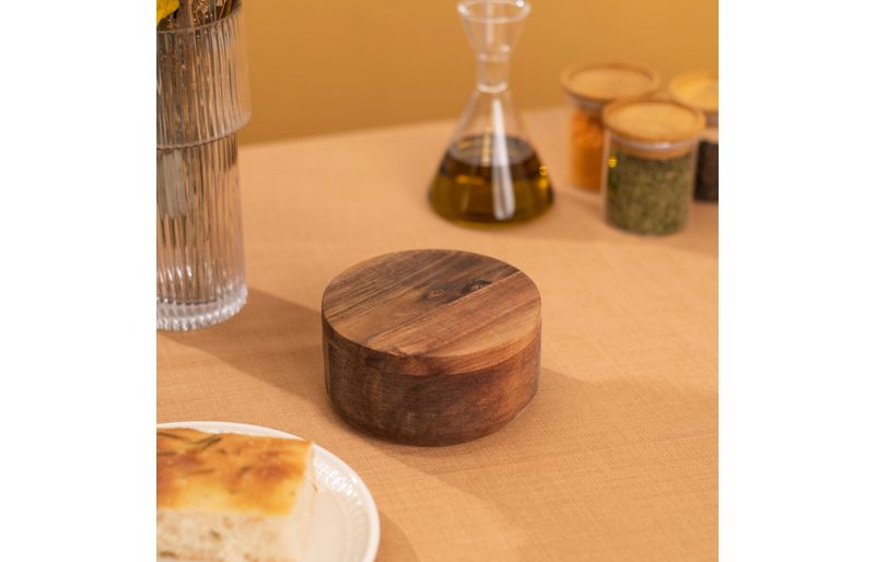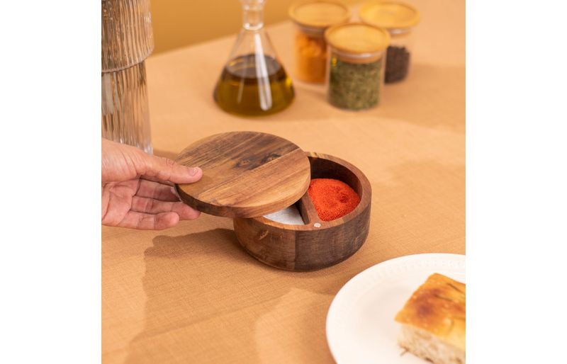 "conheça o saleiro madeira acácia redondo duplo resistente 500ml da oikos!