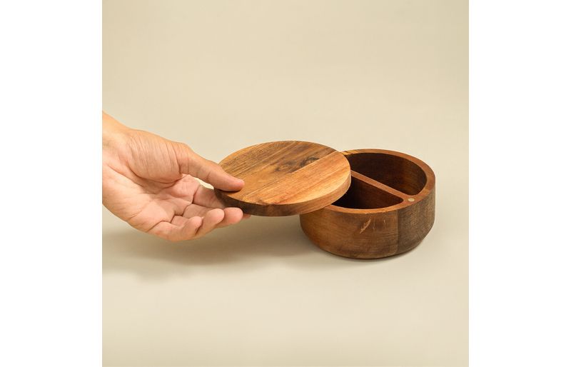 seu design diferenciado pode até ser confundido com uma peça decorativa, o que torna o saleiro uma excelente opção para deixar a sua cozinha, armário ou qualquer outro ambiente mais charmoso. além disso, a madeira de acácia traz um toque natural e aconchegante, criando um ambiente rústico e cheio de personalidade.