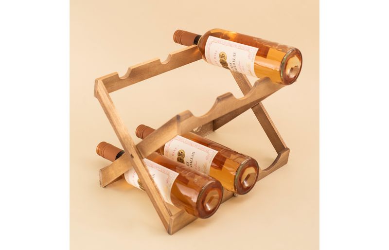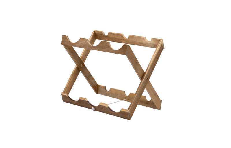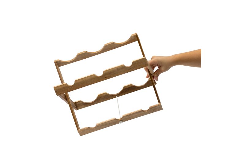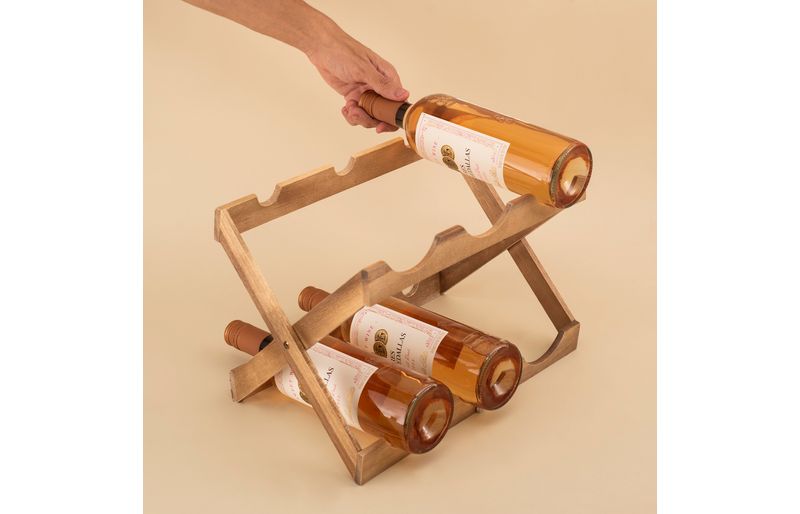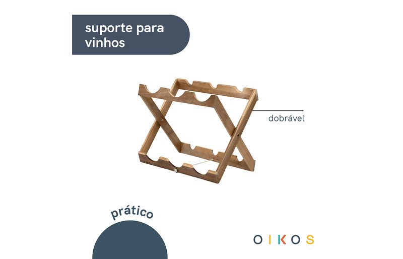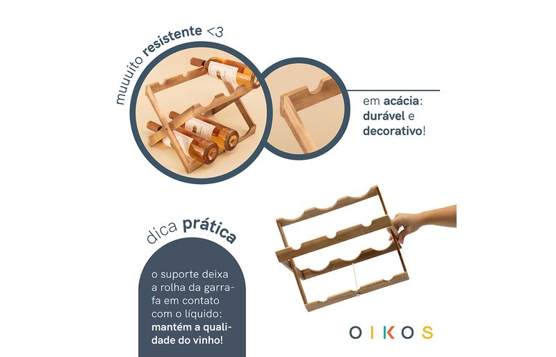 "conheça o suporte de madeira acácia dobrável para 6 garrafas de vinho da oikos!