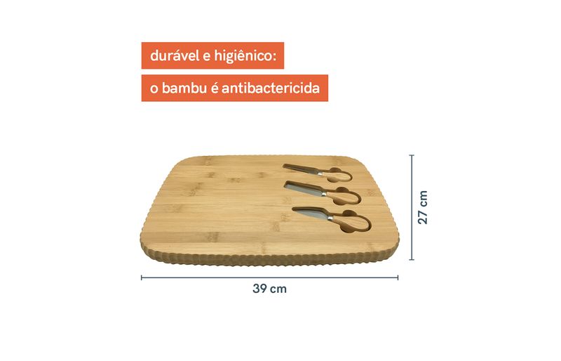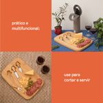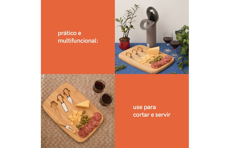 multiuso: pode ser usada tanto para servir como para cortar queijos, petiscos, salgados, pães e mais.