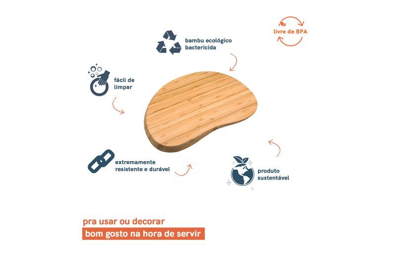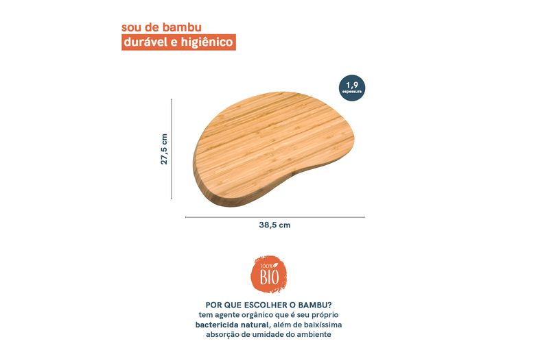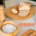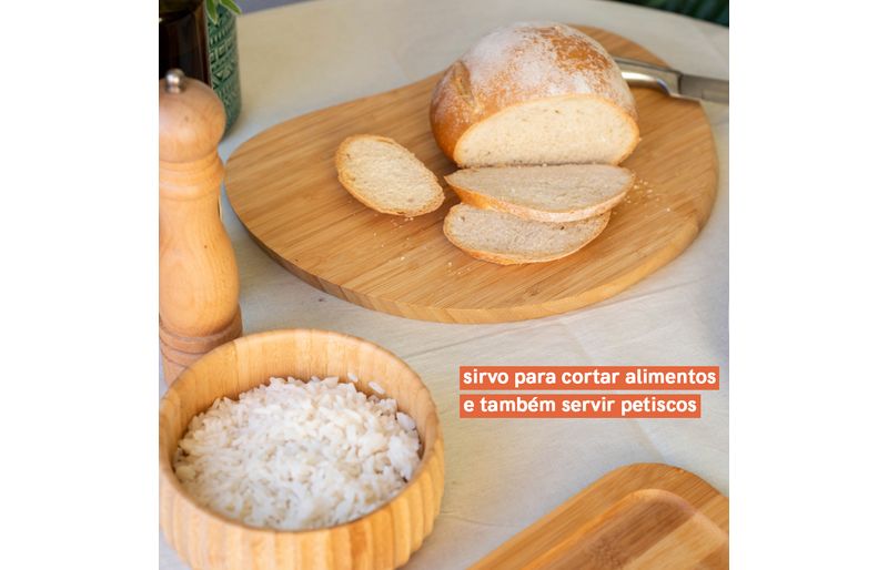Essa é a tábua irregular arredondada de bambu 36cm da oikos. multiuso, ela serve para cortar alimentos e também para servir petiscos. como o tom natural do bambu dá um toque rústico na decoração, também vale utilizar essa tábua de apoio para diferentes itens. na hora da lavagem, basta higienizar com detergente neutro e guardar só quando ela estiver bem seca.