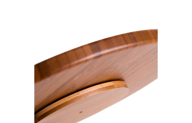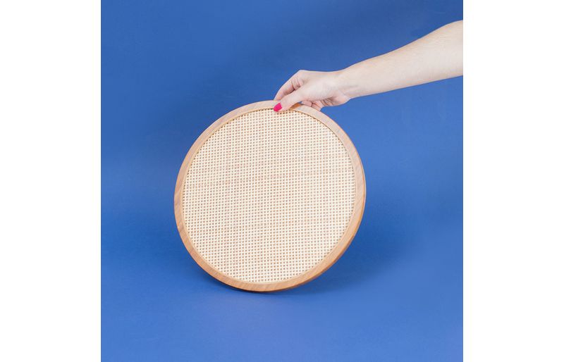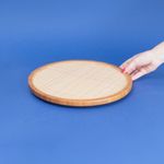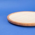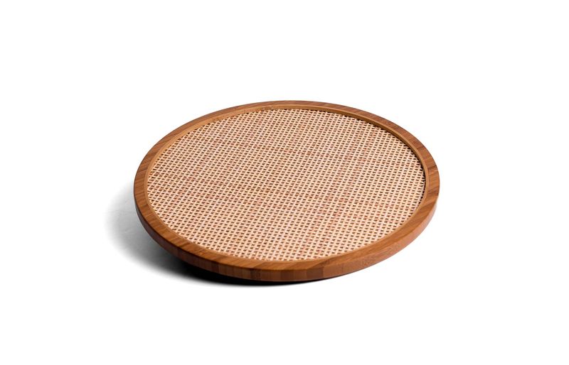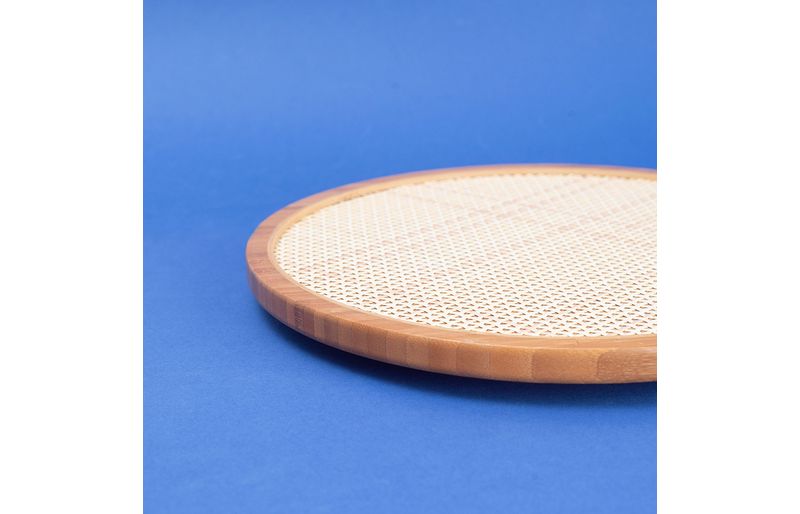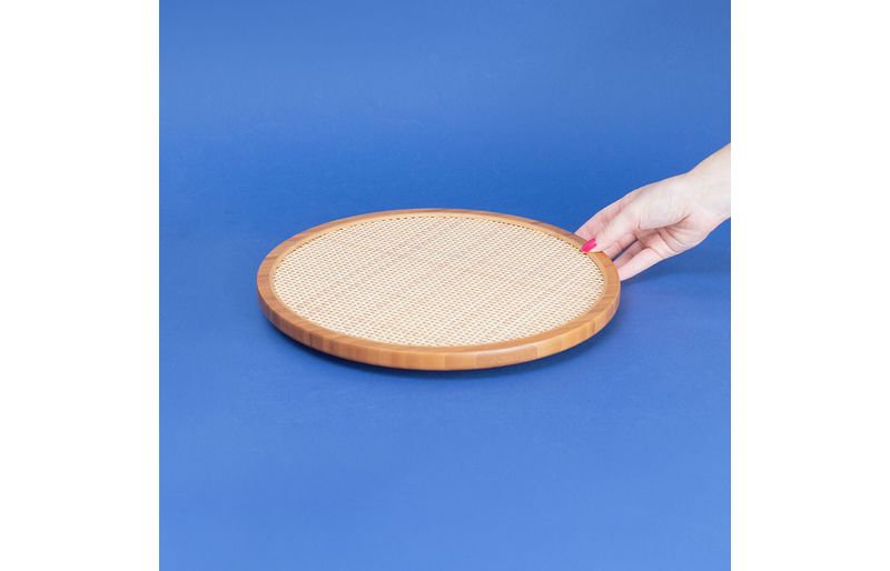 "conheça a tábua com base giratória de bambu e textura palhinha xadrez 33cm da oikos!