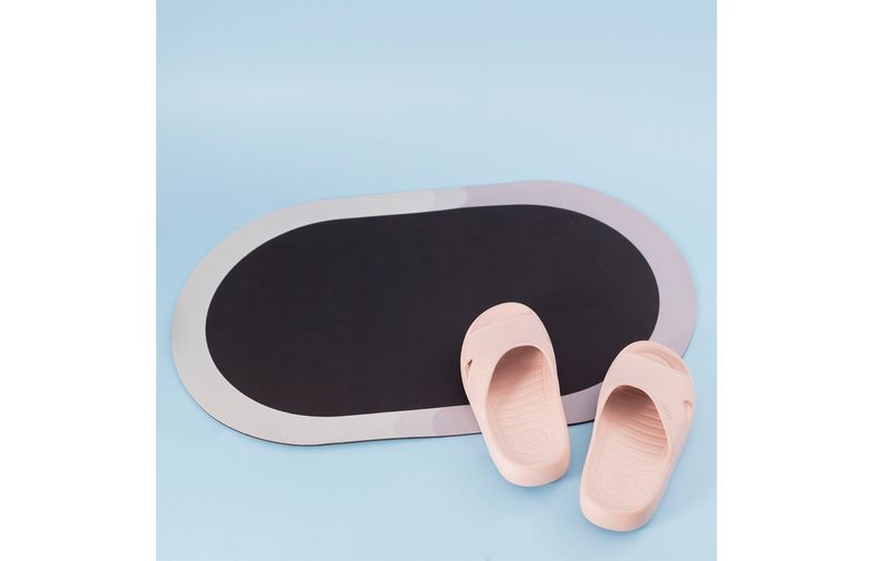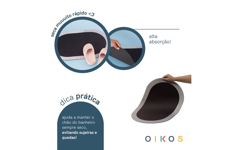"conheça o tapete de banheiro antiderrapante seca rápido oval da oikos!