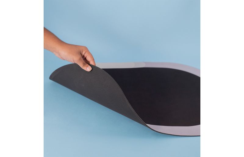 possui tecido tecnológico nobuck: superfície com até 90% de porosidade permite que a água penetre facilmente, acelerando a absorção?. camada absorvente de lama de diatomáceas: acelera a evaporação da água, deixando o tapete seco mais rapidamente.