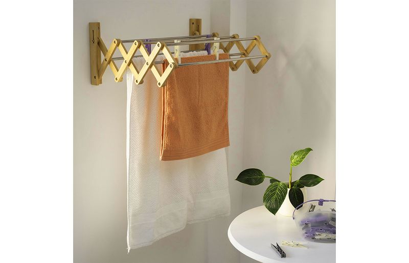 "varal sanfonado em bambu com hastes metálicas - simplo