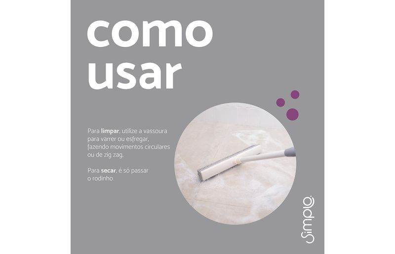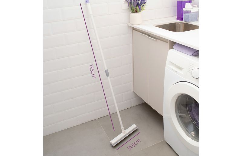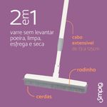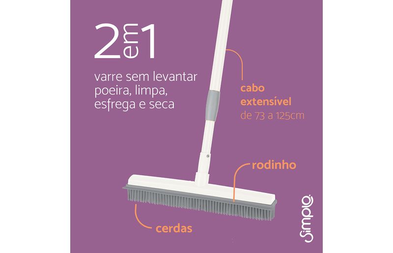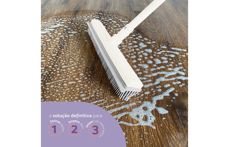 é 2 em 1: a vassoura emborrachada é perfeita para varrer e tirar pó. ao inverter a ferramenta, o rodo seca muito bem áreas molhadas!