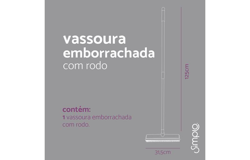prática e moderna, possui cerdas de borracha: evitam o acúmulo de sujeira, facilitam a limpeza e podem ser usadas em diferentes superfícies, além de serem fáceis de lavar! é ideal para limpezas rápidas, diárias e com pouco esforço. varre sem levantar poeira, limpa, esfrega e seca! utilize para esfregar pisos, tapetes e carpetes, janelas, azulejos e superfícies lisas.